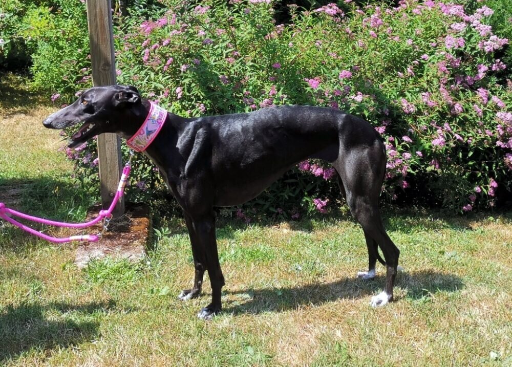 Artgenossen gegenüber ist sie freundlich und auch Katzen mag sie. Die sanfte Hündin liegt gerne auf der Couch und genießt ihr neues Leben in ihrer Pflegefamilie. Es macht Freude, ihre Flitzerunden Garten zu beobachten. Gerne liegt sie aber auch auf der Wiese und beobachtet die Vögel ohne Anstalten, Jagd auf diese zu machen.