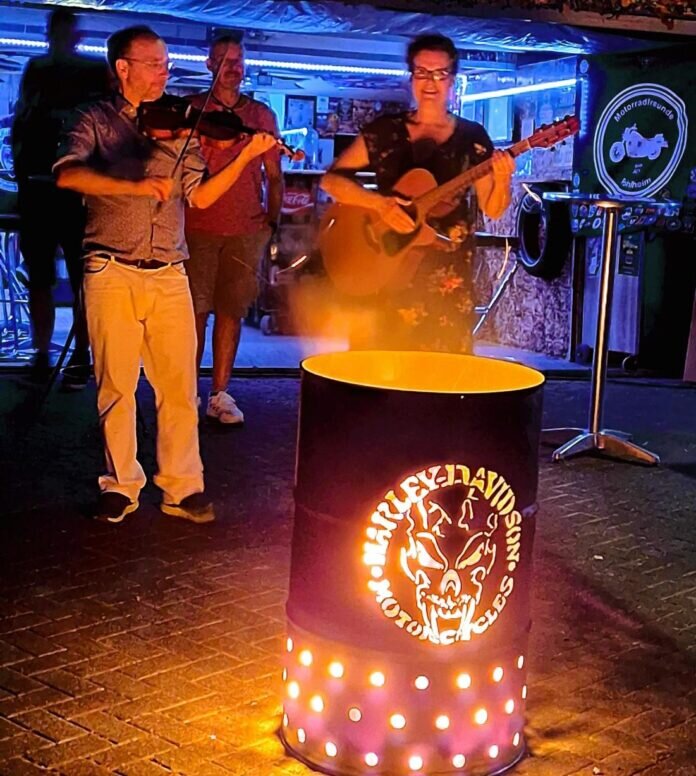 Schon am Samstag lockten die „Motorradfreunde Pohlheim“ die Besucher in den Riedenweg. Den Höhepunkt bei den Motorradfreunden erlebten die Gäste am Abend als Eva Saarbourg als Sängerin mit Gitarre und in Begleitung von Ed Westerdale mit Gesang, Gitarre oder Geige solo oder im Duett Lieder sangen.