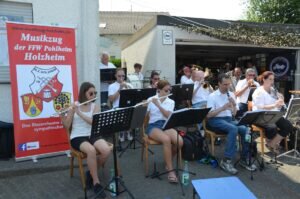 Sonntagnachmittag sorgte der “Musikzug Holzheim” für gute Unterhaltung im Riedenweg bei den Motorradfreunden.