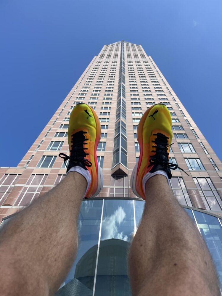 Die letzten 11 Stockwerke nehme ich außergewöhnlich zügig, gleich eines Endspurts bei einem Halbmarathon – wenn er gut läuft.