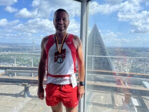 Er verrät mir, dass die sportlichen Höchstleistungen, die beim SkyRun erbracht werden, nicht nur dem reinen Wettkampf, sondern auch einem wohltätigen Zweck dienen. Der Veranstalterverein ARQUE, dessen Vorsitzender Michael Lederer gleichzeitig auch Streckenchef des SkyRun ist, unterstützt seit weit über 40 Jahren querschnittsgelähmte Kinder. Auch diesmal wird der Erlös des Treppenlaufes genutzt, um körperlich beeinträchtigte Jungen und Mädchen zu helfen.