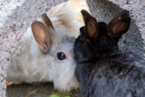 Tinkerbell (siehe großes Foto) und Flocki wurden gemeinsam im Tierheim abgegeben. Die Kaninchendame und der kastriere Rammler mögen sich sehr und suchen daher ein neues Zuhause mit viel Platz zum Haken schlagen.