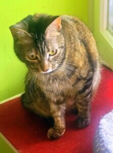 Reina ist zwischen fünf und sechs Jahre alt. Sie hat bisher kein schönes Leben geführt. Sie ist eine von über zwanzig animal hoarding Katzen, die ihr Leben auf engem Raum verbracht haben. Die Besitzerin war gut zu den Katzen. Tiere zu sammeln ist eine Erkrankung!