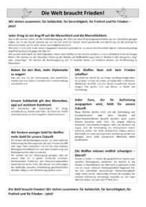 Die Welt braucht Frieden! Wir stehen zusammen: für Solidarität, für Gerechtigkeit, für Freiheit und für Frieden – jetzt!
