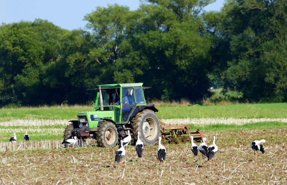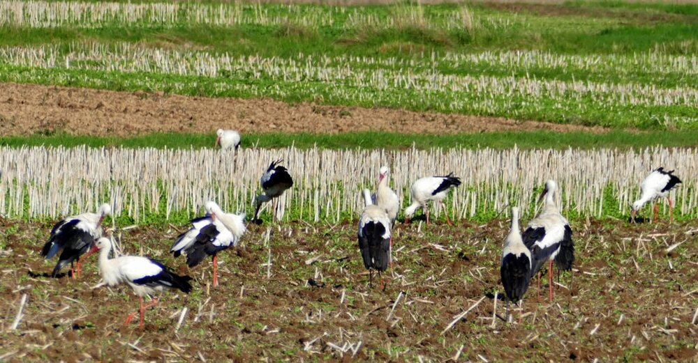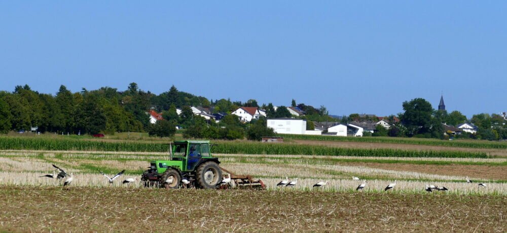Zwischen Heuchelheim und Atzbach, in der Lahnaue konnte ich gestern beobachten wie ein Bauer mit seinem Traktor seine Bahnen zog und die Erde umgrub. Ich habe 40 Störche gezählt und es kamen immer nochmal welche dazu geflogen. Sie ließen sich nicht vom Traktor beeindrucken und stocherten unbeiirt in der aufgewühlten Erde nach freßbarem.