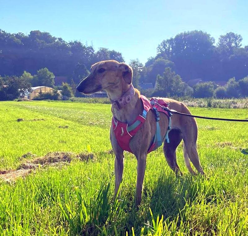 Alles ist fremd für Sima gewesen. Die Wohnung mit einem Körbchen und einer Couch, Spaziergänge an einer Leine, Wiesen und Geräusche. Sie hat schnell gelernt, auch wenn einige Dinge sie noch verunsichern und ein Sicherheitsgeschirr notwendig machen.