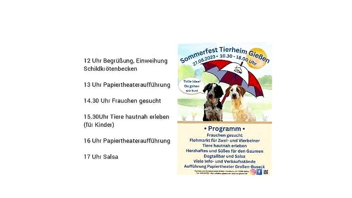 Sommerfest im Tierheim Gießen – PROGRAMM –