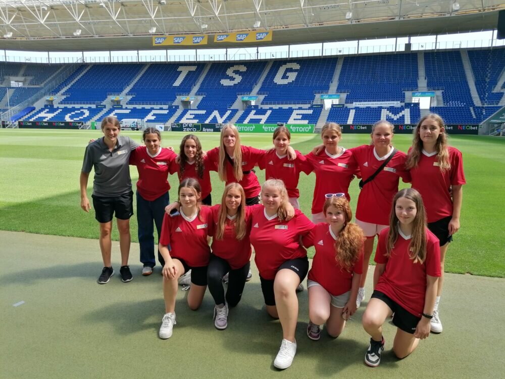 Nun fand die Ferienfreizeit statt und 12 Fußball-Juniorinnen des TSV Klein-Linden und Trainerin Janina Thür verbrachten eine erlebnisreiche Woche in der Sportschule Schöneck (Karlsruhe). Die Linneserinnen waren eine von deutschlandweit 75 Mannschaften, die von der DFB-Stiftung Egidius Braun für eine siebentägige Fußball-Ferienfreizeit ausgewählt worden waren. Auf die insgesamt 4 Mädchenmannschaften in Schöneck warteten neben Trainingseinheiten und Spielen auf dem Fußballplatz auch einige weitere Programmpunkte wie der Besuch in der Klima Arena und einem Stadionbesuch beim Bundesligisten TSG Hoffenheim, sowie Ausprobieren der Sportart “Roundnet”. Ein absolutes Highlight war ein Wertedialog mit der zweifachen Fußballweltmeisterin Renate Lingor. Innerhalb der Woche lernten sich die knapp 50 Mädchen besser untereinander kennen, bauten Vorurteile ab. Am Ende der Freizeit verabschiedeten sich zwei Spielerinnen aus unterschiedlichen Vereinen mit den Worten: “Wir sehen uns in der Bundesliga wieder!”.