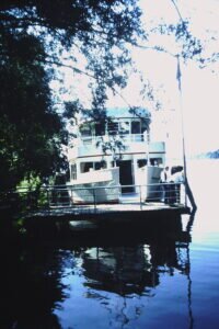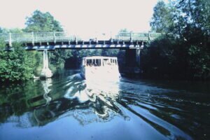 In Rothenhusen fließt aus dem Ratzeburger See die Wakenitz nach Norden und mündet im Lübecker Stadtgebiet nach 15 km in die Trave. Die Wakenitz wird auch gerne als “Amazonas” des Nordens” bezeichnet. Sie war viele Jahre unberührt und die Natur konnte sich an ihren Ufern frei entwickeln, war sie doch die Grenze zur DDR. Die Brücke direkt am Ausfluß aus dem See ist seit 2009 eine moderne Stahlbogenbrücke. Bei meinem ersten Besuch anno 1990 war sie noch aus Holz und für Fahrzeuge über 1 to gesperrt. Ganz aus Versehen fuhr ich mit meinem VW-Golf drüber, nachdem ich auf der Ostseite des Sees den Kolonnenweg der DDR-Grenztruppen bis zur Brücke gefahren war. Die Ausflugsschifffahrt fand jedoch auf der Wakenitz immer statt.