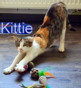 Alle Mutterkatzen sind bereits kastriert und zurück auf dem Hof. Eine Mieze war hoch tragend, sodass eine Katration aus ethischen Gründen nicht mehr in Frage kam. Sie bekam den Namen Kittie und lebt jetzt bei Dany und Dominik mit ihren vier Kitten. Wider Erwarten fühlt sich die an Freiheit gewohnte Katze sehr wohl im Haus. Sie verträgt sich mit den Kindern und den Hunden.