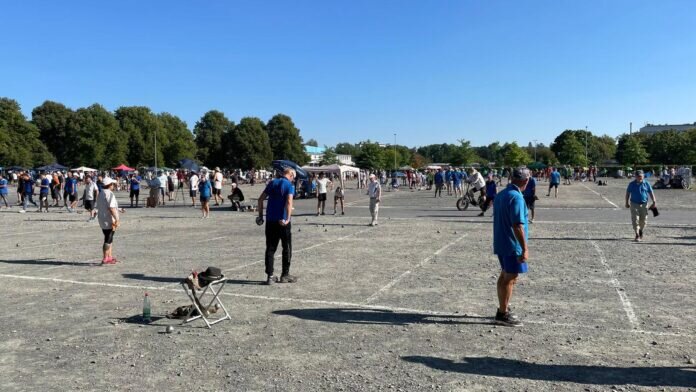 Letzten Samstag, am 9. September, war Gießen die Boulehauptstadt Hessens. Um 10 Uhr wurde bei der Eröffnungszeremonie zunächst in der Rede der Präsidentin des Hessischen Pétanque Verbands (HPV) den vielen Unterstützer:innen, der Stadt Gießen und als Kontaktperson vor Ort dem Lindener Michael Massee ein großer Dank ausgesprochen. Ohne das Zusammenspiel der verschiedenen Organisationen und Verbände, Vereine wie den SPVGG Blau-Weiß sowie Privatpersonen hätte das Organisationsteam des HPV diese Mammutveranstaltung mit ca. 1.000 Boulespieler:innen sicherlich nicht stemmen können.