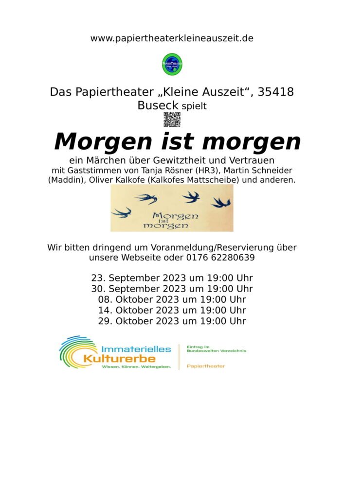 Alle Spietermine findet man auch auf: www.papiertheaterkleineauszeit.de/events