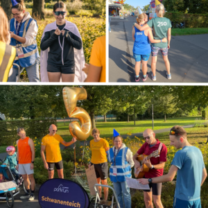 Und das wurde (unter anderem) alles gefeiert: der Schwanenteich parkrun für seinen fünften Geburtstag, Ziggi für die musikalische Einstimmung mit Gesang und Gitarre, Annabell für zehn Teilnahmen als Jugendliche, Lisa als Geburtstagskind, Marina für ihre legendären Moderationen als Laufleiterin, die Gäste aus England mit über 250 und 500 parkrun-Teilnahmen und im Ziel dann u.a. Matthias für eine weitere persönliche Bestzeit, und natürlich alle, die in den letzten fünf Jahren dafür gesorgt haben, dass der Schwanenteich parkrun jeden Samstag stattfinden kann – insgesamt schon über 350 unterschiedliche Helfer*innen, und damit der zweithöchste Wert aller parkruns in Deutschland!