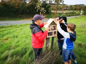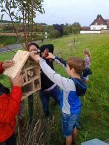 Kirchvers, 04.10.23 – Nach der Fertigstellung der Insektenhotels von unseren jüngsten Team-Mitgliedern haben wir nun einen perfekten Platz für die „Luxus-Wohnungen“ gefunden.