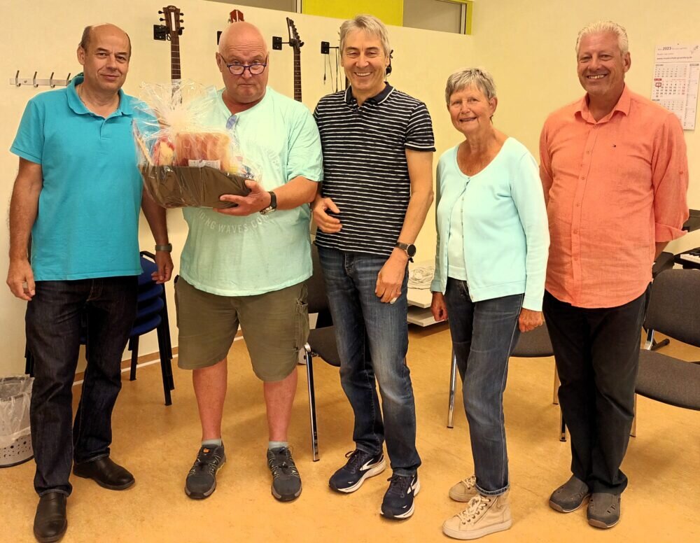 Vorstand und Schulleitung der Musik- und Kunstschule gratulierten und überreichten dem Jubilar einen Präsentkorb.