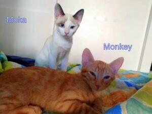 Der rote Monkey und seine zarte Freundin Moka, geboren im März 2023, möchten ihr Leben gerne zusammen in einer netten Familie verbringen.