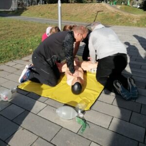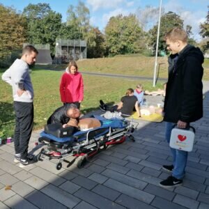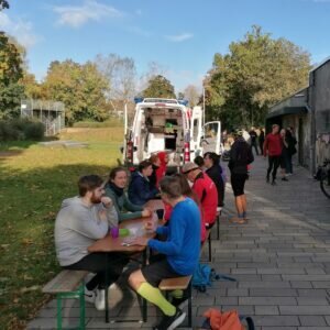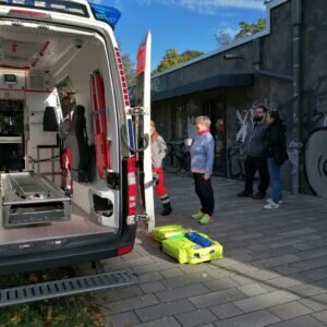Die Ärzte und Rettungskräfte kamen ausgerüstet mit Fachwissen, Übungspuppen & einem Rettungswagen für Schulungszwecke, um nach dem parkrun (wissens)hungrigen Teilnehmenden & Helfenden die Möglichkeit zu bieten, sich selbst an der Laienreanimation zu versuchen.