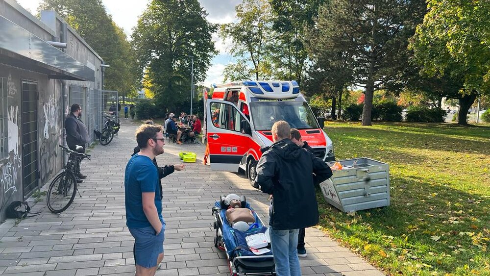 Die Ärzte und Rettungskräfte kamen ausgerüstet mit Fachwissen, Übungspuppen & einem Rettungswagen für Schulungszwecke, um nach dem parkrun (wissens)hungrigen Teilnehmenden & Helfenden die Möglichkeit zu bieten, sich selbst an der Laienreanimation zu versuchen.