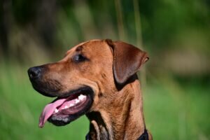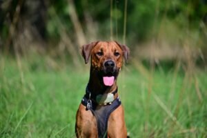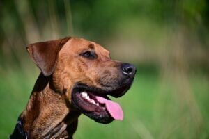 Der kastrierte Rüde ist 16 Monate und ein Rhodesian Ridgeback Mischling.