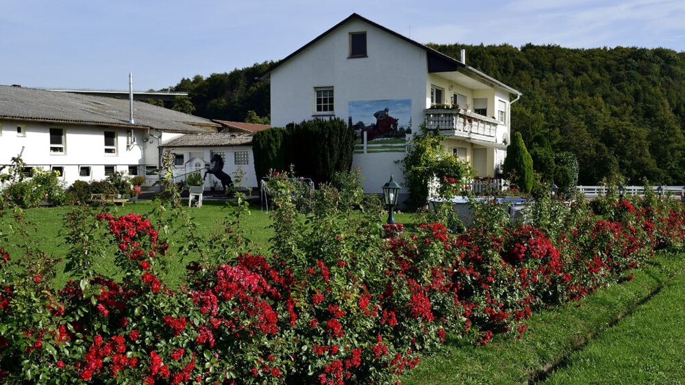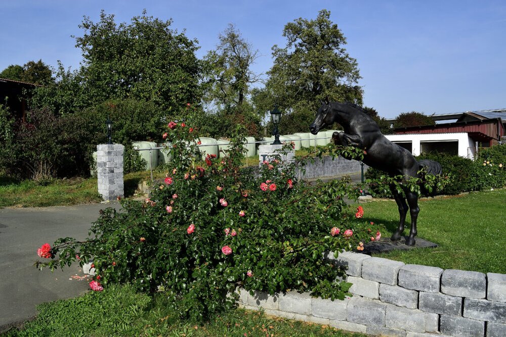 Auch hier ein ansehnliches Anwesen mit gepflegten Grundstück, großer Reithalle – Sportpferde – von Sebastian und Hartmut Haas, Beuerner Weg 105, Großen-Buseck. Die Familie bedankt sich für die Fotos und über ihren Hof zu berichten.