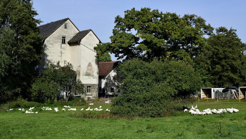 Das Haupthaus wurde durch eine Holzprobe auf das Baujahr 1680 bestimmt. Das Torhaus wurde von meinem Ur, Ur, Großvater, Johannes Groß, 1854 errichtet. 1909 heiratete mein Ur Großvater, Wilhelm Schmidt aus Großen-Buseck – in den Hof ein und eröffnete als Nebenerwerb eine Kohlehandlung, auf die sich der Dorfname “Schwoarze -hannewärts” ableitet. Auch der Bau der großen Scheune im Innenhof ist ihm zuzurechnen. Mein Großvater, Ludwig Schäfer aus Annerod, nahm keine großen baulichen Veränderungen vor. Sein Leben war schwer belastet durch Krieg und Folgen des Krieges. Anfang der 1960 ziger Jahre übernahm mein Vater, Willi Schäfer aus Annerod, den Betrieb und somit den Bauernhof. Er baute diesen zu einem damalig üblichen Milch- Mischbetrieb aus. 1996 wurde reformbedingt die Milchwirtschaft aufgegeben. 2000 übernahm ich, Berns Schäfer, den Betrieb und führte ihn bis heute als klassischen Ackerbau und Grünlandbetrieb weiter. Meine Hoffnung ruht nun auf meinen Sohn Mats, der zur Zeit großes Interesse an der Wiederbelebung des Ackerbaus und Viehwirtschaft zeigt. … Ein schöner Gedanke, wenn ein Betrieb in bäuerlichen Tradition weiter geführt wird.