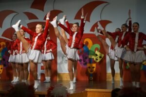 Gleiches galt für die Knallbonbons des CCR, die ihren neuen Marsch auf „Null oder Hundert“ von Miljö aufführten, und die CCR-Teeniegarde, die in diesem Jahr auf „Hück bes do mir“ von Kempes Feinest tanzt. Besonders emotional wurde es dann gegen Ende des Abends, als vier langjährige Tänzerinnen aus der Tanzgarde verabschiedet wurden, die dem Verein jedoch allesamt in der Showtanzgruppe „Projekt“ und zum Teil auch im Trainerteam erhalten bleiben. Anschließend erklangen die Töne von John Miles‘ „Music“ – seit vielen Jahren die Einmarsch-Musik der Tanzgarde des Vereins und für die Gäste das Zeichen, sich von ihren Plätzen zu erheben. Mit ihrem Tanz zu „Thekenmädchen“ von Versengold sorgte die stark verjüngte Gruppe für gute Stimmung und leitete in den noch ausgelasseneren Teil des Abends über.
