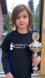 Das erst 7jährige Schachjuwel Levi Pötter konnte mit 5 Siegen aus 7 Partien in der zusammengelegten Altersklasse U8/U10 nicht nur seinen Bezirksmeistertitel im spielstärksten Schachbezirk Hessens – Frankfurt – verteidigen, sondern auch seine insgesamt 3. Meisterschaft feiern! Er nahm seit Juni 2022 im zarten Alter von nur 5 Jahren an 19 Jugend-Turnieren teil, und landete dabei insgesamt 9 Turniersiege sowie 3 weitere Male auf dem Sieger-Treppchen, was seine Pokale-Sammlung eindrucksvoll erweiterte! 7 weitere Male landete er in den Top 10, jeweils mit einer Punkteausbeute von weit über 50%.