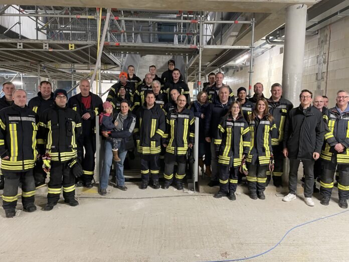 Bei der Feuerwehr gibt es den Ausdruck “Vor der Lage sein”. „Damit meinen wir unser Ziel, durch genügend Vorbereitung immer einen Schritt vor einem drohenden Ereignis zu sein. Nur dann ist man im Ernstfall in der Lage, zu agieren, anstatt zu reagieren“, sagte Jens Richmann (Gemeindebrandinspektor Fernwald) zum Anlass der Begehung. Getreu diesem Motto haben die Freiwilligen Feuerwehren aus Annerod und Steinbach die Chance genutzt und den Erweiterungsbau der Grundschule Annerod erkundet. Nils Ottinger, Projektleiter vom Fachdienst Bauen des Landkreises Gießen wies auf die für die Einsatzkräfte besonders wichtigen Einrichtungen im Gebäude hin, wie beispielsweise Flucht- und Rettungswege, Technikräume etc. Das freistehende Gebäude ergänzt die vorhandenen Schulgebäude, die weiterhin genutzt werden. Auf dem Dach wird es neben der Fotovoltaikanlage eine begrünte Fläche geben. Das Gebäude selbst wird mit einem energetischen Heiz- und Lüftungssystem ausgestattet. „Ein hochmodernes Schulgebäude, in dem die Anneröder Kinder zukünftig lernen und betreut werden. Hoffentlich werden wir die Feuerwehrleute hier nie für einen Einsatz brauchen“, sagte Bürgermeister Manuel Rosenke, der die Einsatzkräfte auf dem Rundgang durch das Gebäude begleitete und für das stetige Engagement dankte.