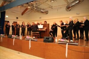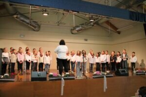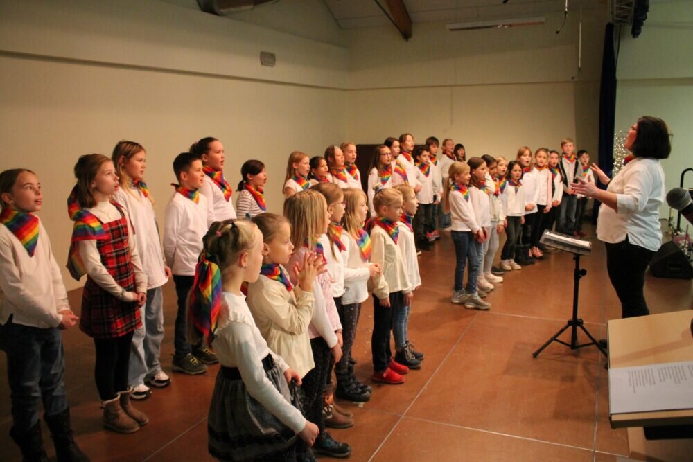 Die Schwerpunkte des Programms bildeten Liedvorträge. Der Schulchor der Holzheimer „Regenbogenschule“ sang vier mitreißende Lieder unter Leitung der Schulleiterin Iris Einmal.