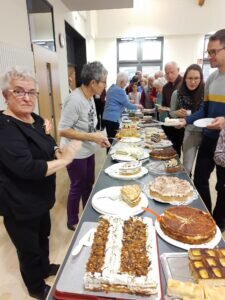 Kulinarische Genussmomente wurde den Gästen bei Kaffee, Kuchen, Schnittchen und Kaltgetränken zuteil. Immerhin gab es zwanzig verschiedene Kuchen in der Auswahl des Küchenbuffetts, die von Holzheimer Kuchenbäckerinnen für die Jubiläumsfeier gespendet wurden.