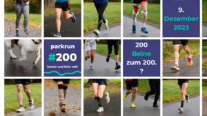 Am 9.12. feiern wir dann unseren 200. Schwanenteich parkrun – ein (inoffizieller) Meilenstein, an dem wir die Magnum-Flasche-Sekt (noch verschlossen von unserem 5. Geburtstag) öffnen werden und es bestimmt auch Kuchen geben wird! Schaffen wir es an diesem Tag, 200 Beine zusammen zu bekommen – ob laufend, walkend, gehend oder helfend? Bringt gerne jemanden zu unserem Jubiläum mit, denn Ihr wisst ja: Gemeinsam ist parkrun am schönsten!