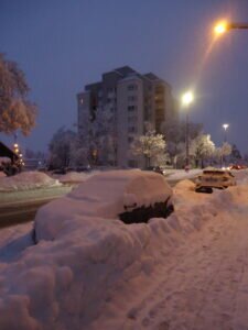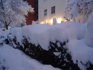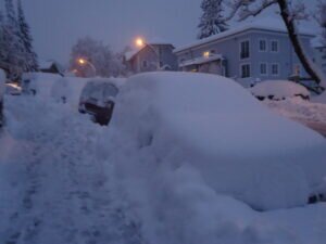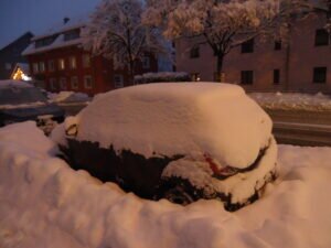 oder eher “ein Winter, wie es früher einer war”, in Abwandlung von Rudi Carells “wann wird es wieder einmal Sommer, wie es früher einer war”? Ich hielt mich an die Empfehlungen der bayrischen Rundfunkdurchsagen und blieb bis zum späten Nachmittag zu Hause. Dann machte ich mich doch mit Rucksack und relativ wasserdichten Schuhen auf den halbstündigen Weg zum Versorgungszentrum meines Stadtviertels in Kempten im Allgäu. Die Strassen waren weitgehend geräumt, der Autoverkehr pulsierte problemlos. Aber die Fußgänger! Oh je, oh jemine. An jeder ampelbewehrten Kreuzung rauschte der Autoverkehr problemlos durch, die Fußgänger mußten sich vor den Sprühwasserfontänen schützen und durch Matschpfützen an den Ampeln und ungeräumte Gehsteige ihren Weg suchen. Aber immerhin, auf dem Rückweg kamen mir die ersten Räumkommandos für die Fußgängerüberwege entgegen. Die Hintanstellung der Fußgänger (und Radfahrer) in solchen Situationen dürfte nun keine spezifisch Allgäuer Erscheinung sein, sondern weithin Normalzustand.Der Einkaufsspaziergang hatte dennoch seine Reize, wie die Fotos hoffentlichzeigen