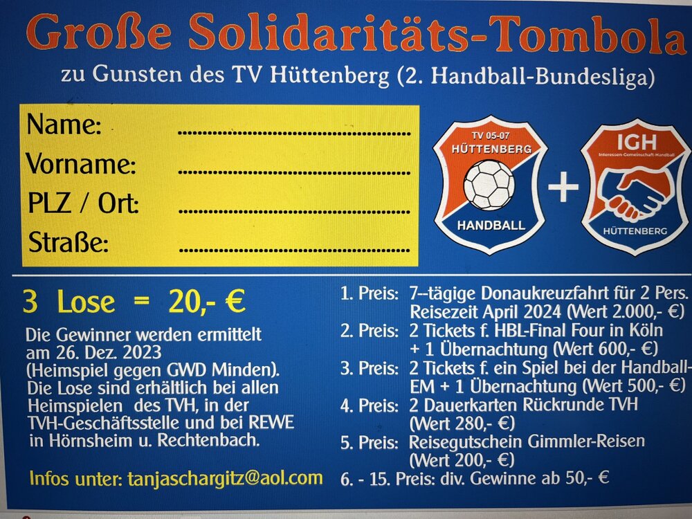 Für alle interessierten an der großen TVH-Solidaritäts-Tombola besteht die Möglichkeit bis zum 24.12.2023 teilnehmer-Lose zu erwerben!