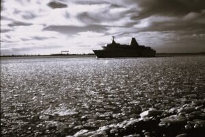 Angefangen sei mit der Englandfähre zwischen Hamburg und Harwich, die bis 2003 verkehrte und danach noch bis 2005 zwischen Cuxhaven und Harwich. Hier schwimmt sie auf der Elbe vor Blankenese Richtung Hamburg. Im Hintergrund der Portalkran der auch nicht mehr existierenden Sietas-Werft. Zum Zeitpunkt der Aufnahme, so etwa Mitte der 1990-er Jahre hieß das Schiff “Hamburg”: