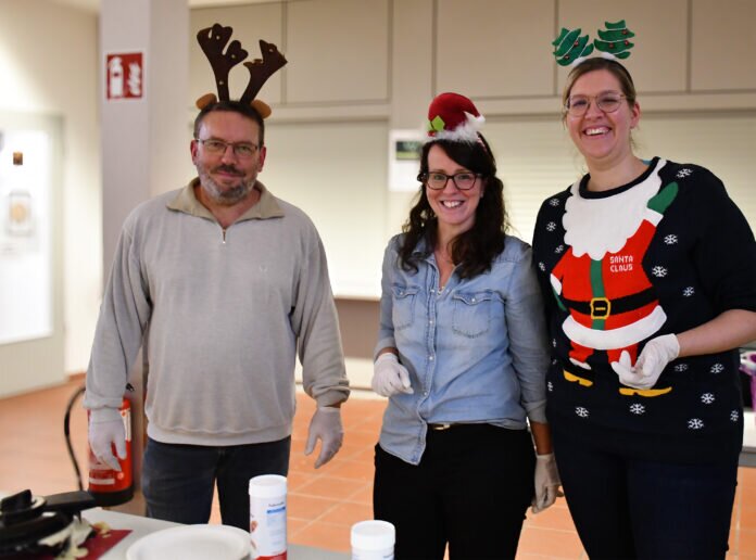 „Die Angebote wurden eigentlich allesamt sehr gut angenommen und haben die Weihnachtsstimmung innerhalb der Werkstatt bei allen Beteiligten gesteigert. Besonders hoch im Kurs stand am 18. Dezember der Besuch einiger Ponys, die sich im Besitz einer unserer Kolleginnen befinden. Natürlich gab es hierbei auch die Möglichkeit, die Tiere zu streicheln, zu putzen und zu füttern“, erklärt Stolze, die selbst an dem einen oder anderen Adventsevent mitwirkte. So auch beim 19. „Türchen“, bei dem sie gemeinsam mit Katharina Becker (Sozialdienstleitung) und Olaf Schneider (Produktionsleitung) zunächst einige Kilo Teig vorbereitet hatte, um diese anschließend auf vier Waffeleisen zu leckeren Waffeln zu verwandeln – und zwar für alle der über 100 Mitarbeiter*innen, die sich diese Adventsüberraschung in der weihnachtlich dekorierten WeLo-Kantine schmecken ließen.