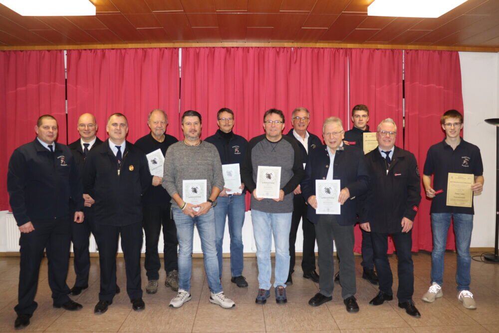 Von einer guten Arbeit im Jahr 2023 in der Einsatzabteilung, bei der Nachwuchsarbeit und im Vereinsgeschehen konnten sich bei der Jahreshautversammlung der Freiwilligen Feuerwehr Stockhausen die anwesenden Mitlieder überzeugen. Die nach dem Totengedenken an Dieter Nickel und Karlheinz Gottesleben erstatteten Berichte zeugten bei 11 Alarmierungen von einem arbeitsreichen Jahr für die acht Einsatzkräfte. Wehrführer Sascha Hofmann berichtete von drei Hochwasser-Einsätzen, einem Verkehrsunfall-Einsatz, einem Flächenbrand, einem Kamin- und einem Gebäudebrand. Zudem gab es noch zu einer Tragehilfe, zu einer Türöffnung und zur Beseitigung von zwei Ölspuren weitere Hilfeleistungsalarmierungen. Unterstützt wurde das Einsammeln der Weihnachtsbäume und der Faschingsumzug in Mücke. Neben den 71 Einsatzstunden standen noch 377 Ausbildungsstunden zu Buche. Bei der überörtlichen Ausbildung wurden von Jonas Liehr, Marlon Ruppel, Holger Liehr, Kevin Wingefeld und Jannik Jochim fünf Lehrgänge und acht Seminare besucht. Derzeit sind von den vier Atemschutzgeräteträgern zwei einsatztauglich. Erfreut zeigte sich Hofmann über die Aufnahme von den zwei aus der Jugendfeuerwehr kommenden Jonas Liehr und Marion Ruppel, sowie von Dominique Dejan in die Einsatzabteilung in Stockhausen. Im technischen Bereich gab es mit der Anschaffung eines Alarmmonitors im Gerätehaus eine enorme Verbesserung. Zu den Aktivitäten der Jugendfeuerwehr erwähnte Jugendwart Holger Liehr neben der intensiven feuerwehrtechnischen Ausbildung in Theorie und Praxis die Teilnahme am Stadtpokal und das mit 120 Jugendlichen und Betreuern durchgeführte Jugendzeltlager am Edersee mit einer mit 20 Aufgaben zu bewältigenden Wanderung. Weitere Unternehmungen und Teilnahmen waren für die 29 aus den Seenbachtalgemeinden kommenden Mädchen und Jungen ein Gaudi-Wettkampf Wasser, eine Radtour, das Schlittenfahren, der Laternenumzug beim Gallusmarkt und der Festumzug beim Kreisfeuerwehrverbandstag in Grünberg. Erfolgreich beendeten sieben Jugendliche einen Grundlehrgang. Zusammen mit zwei weiteren Jugendlichen werden diese nun in die jeweilige aktive Einsatzabteilung wechseln. Schriftführer Michael Auriga berichtete über die vom Feuerwehrverein durchgeführte und gut besuchte Grillfeier am 1. Mai. Das traditionelle Brückenfest und ein besinnlicher Glühweinabend mit Würstchen und Weihnachtsplätzchen fanden beim Feiern am Gerätehaus guten Zuspruch. Die Finanzen des Vereins legte Kassenwart Matthias Schuch offen, dem wie dem gesamten Vorstand auf Antrag der Kassenprüfer Ulrich Jochim und Thorsten Diehl Entlastung erteilt wurde. Als weiterer Kassenprüfer wurde Gunter Hartmann gewählt. Stadtbrandinspektor Jörg Sprankel beförderte zusammen mit Wehrführer Sascha Hofmann Jonas Liehr und Marlon Ruppel zu Feuerwehrmännern. Bei den von Holger Liehr und Michael Auriga vorgenommenen Vereinsehrungen wurde Berthold Adomat für 25 Jahre Mitgliedschaft geehrt. 40 Jahre gehören der Feuerwehr Gunter Hartmann, Ulrich Jochim und Martin Oswald an. Für 50-jährige Vereinstreue erhielten Eberhard Schlosser und Jürgen Biedenkapp die entsprechende Urkunde verliehen. Den nicht anwesenden Jubilaren Wolfgang Helbing, Georg Gustav Höchst, Peter Rudkovski, Dieter Maxeiner, Klaus Altensen, Rainer Biedenkopf, Thomas Kraft, Werner Richber, Matin Rohn, Werner Röhrig, Berthold Dudka, Karl-Heinz Bräuning, Reinhold Diehl und Armin Schmitt wird die Ehrung nachgereicht. In ihren Gruß- und Dankesworten lobten Stadtrat Jürgen Biedenkapp und Stadtbrandinspektor Jörg Sprankel die ausgezeichnete Jugendarbeit. Diese stehe für eine gute Zukunft der Wehren im Seenbachtal und sollte weiterhin auch gefördert werden.