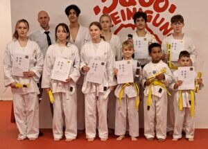 Knapp 20 Sportler gingen in der ersten der 3 Jahresabschlussprüfungen von SPORTING Taekwondo unter den Augen von DTU-Bundesprüfer Eugen Kiefer in die nächste Graduierungshöhe auf dem Weg weiter, irgendwann in Zukunft den Schwarzen Gürtel anzusteuern.