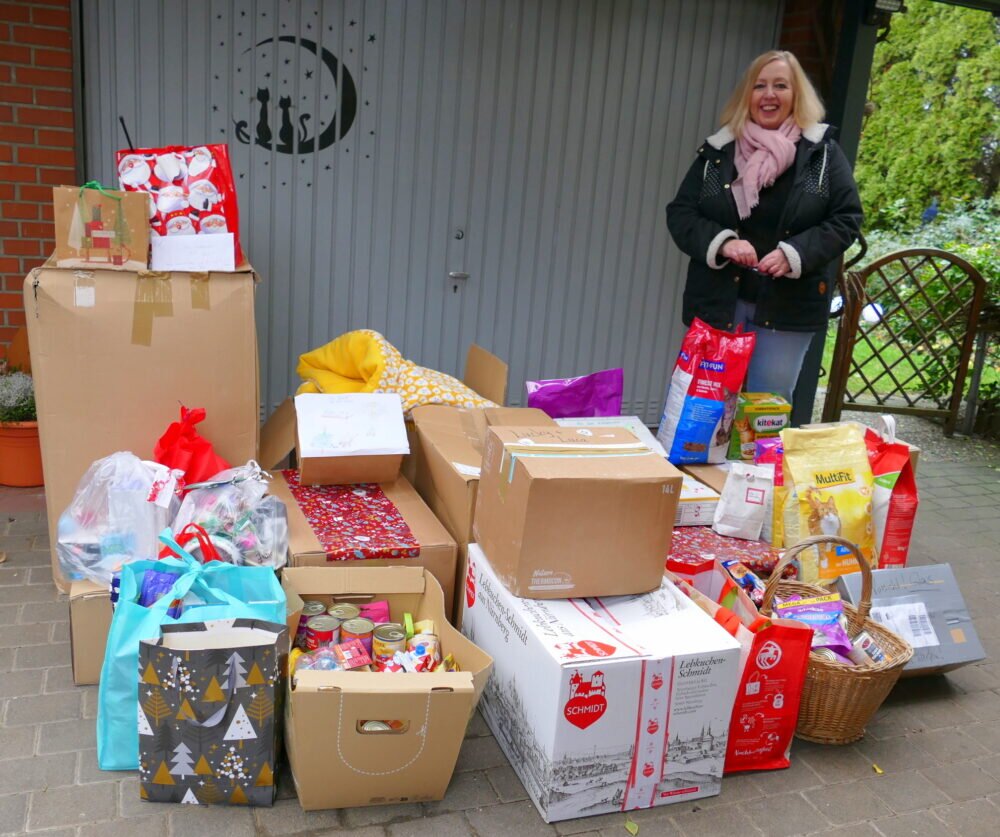 Sehr erfolgreiche Weihnachtsspendenaktion für Katzenreich e.V. Von Irmtraut Gottschald - 29. Dezember 2023 142 Ein Berg von Spenden. Im Bild die Initiatorin Elke Wolf https://www.giessener-zeitung.de/wp-content/uploads/2023/12/VID-20231229-WA0022.mp4