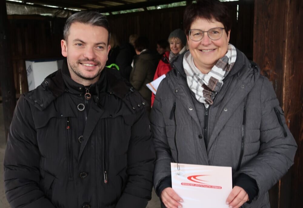 Nach Beendigung der Übergabe erhielt Nicole Rabenau von Gustav Schander, StV. Vereinsvorsitzender des TSV 07 Londorf, der in Vertretung eines HLV-Vorstandsmitgliedes fungierte, für ihre hervorragenden Verdienste in den Leichtathletischen Belangen die HLV-Ehrennadel in Silber mit Urkunde.