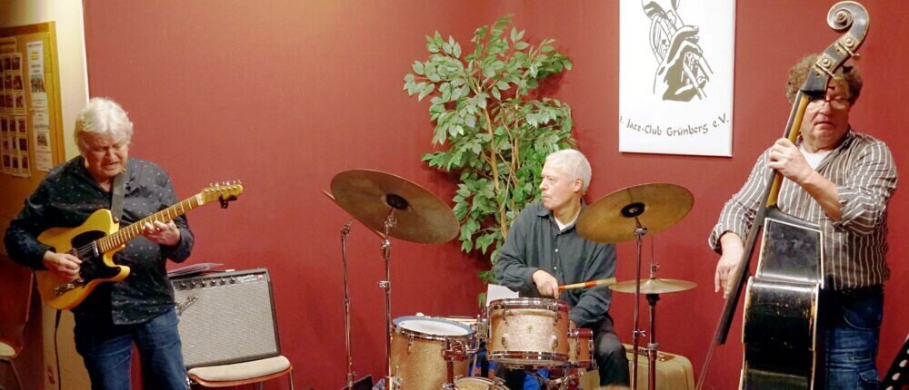Der Gitarrist Hans Jürgen Gessinger und der Schlagzeuger Ted Glöckler waren vor mehr als zwanzig Jahren mit der Jazzrockband Trivial europaweit unterwegs. Als der Bassist Thomas Schilling, der vor dreißig Jahren mit der Frankfurt City Blues Band auf großen europäischen Festivals spielte, auf die beiden traf, entfachte er ihre Spielfreude und Kreativität wieder, und es entstand nicht unbedingt was gänzlich Neues, aber mit ihrer Erfahrung aus zwischenzeitlich unterschiedlichsten Musikrichtungen gelingt es ihnen gemeinsam gängige Jazzstandards auseinander zu rupfen und in ungeahnte Kostüme zu kleiden, ohne in platten, abstrakten Jazz zu verfallen. Der Zuhörer bleibt in dem Genuss des harmonischen Ganzen.                                     An der Gitarre Hans-Jürgen Gessinger, Ted Glöckler am Schlagzeug und am Kontrabass Thomas Schilling.