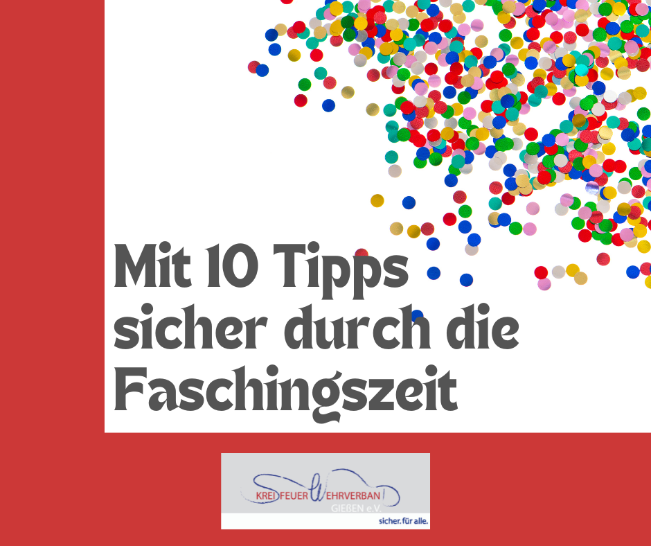 In diesen Tagen erreicht die närrische Saison auch hier im Landkreis Gießen ihren Höhepunkt. Faschingssitzungen, Partys und die beliebten Umzüge ziehen viele Menschen an. Damit die pure Lebensfreude in der fünften Jahreszeit nicht durch Unfälle und Brände getrübt wird, gibt der Kreisfeuerwehrverband Gießen e.V. zehn Sicherheitstipps: