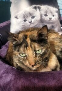 Moon ist eine wunderschöne Schildpattkatze von acht Jahren! Sie ist eine ruhige, ausgeglichene Katze. Zu Menschen sehr freundlich, Artgenossen braucht sie nicht in ihrer Nähe.