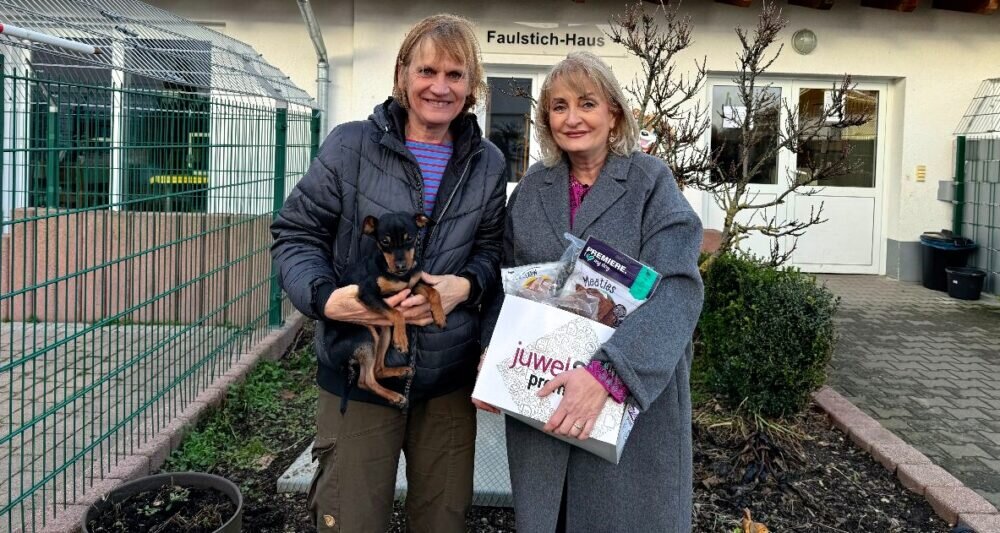 Cynthia Thomas hatte im September letzten Jahres zu einer großen Geburtstagsfeier eingeladen. Statt Geschenk bat sie die geladenen Gäste um eine anonyme Spende in einer dafür bereit gestellten Spardose für den Tierschutz. Ihrer Meinung nach hat man doch ab einem bestimmten Alter, außer Gesundheit, keine großen Wünsche mehr. Aber der Tierschutz benötigt dringend unsere finanzielle Hilfe! Den gespendeten Betrag rundete sie großzügig auf, so dass letztendlich ein Betrag von 700 Euro zustande kam. Obwohl sie inzwischen in Butzbach wohnt, hat sie sich dafür entschieden, den Betrag an das Gießener Tierheim zu spenden. Durch Presse und soziale Medien erfuhr sie davon, wie dringend besonders dort finanzielle Hilfe benötigt wird. Dadurch, dass sie den größten Teil ihres Lebens in und um Gießen gewohnt hat, war es ihr ein zusätzlich großes Anliegen, das dortige Tierheim zu unterstützen. Ich werde auch Mitglied werden und dadurch regelmäßig spenden. Gerne brachte sie zu einem Fototermin eine Kiste mit Leckereien mit, um die ihr besonders am Herzen liegenden Hunde zu verwöhnen! Vorsitzende Astrid Paparone bedankte sich herzlich für die Spende und die Hundeleckerchen.