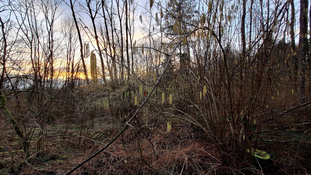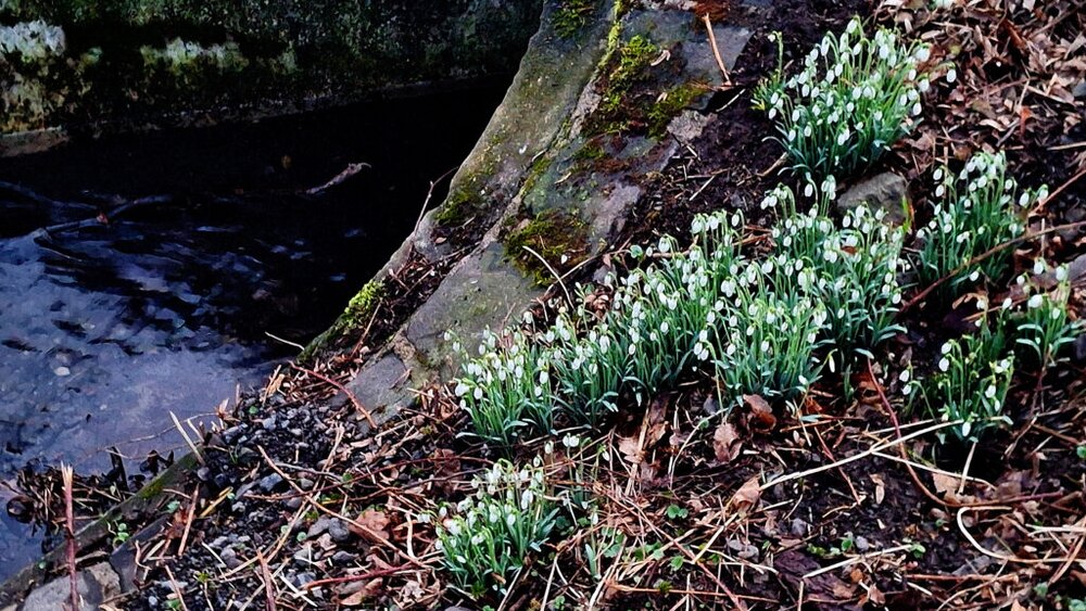 Am späten Sonntagnachmittag machte ich einen Spaziergang – Solo (“große Runde” – wie wir sagen) durchs historische Grünberger Brunnental. So langsam sehnen wir uns um so mehr nach dem Frühlingsanfang. ER steht zwar noch nicht ganz in den Startlöchern, das vernahm ich bei meinem Rundgang. Außer Haselnusssträuchern, die vermehrt ihre Blütendolden zeigten (`Allergikers Freunde`) und Ausgangs Brunnental, am Bachdurchlass des Äschersbachs – waren erste Frühlingsboten – aufgeblühte Schneeglöckchen, zu sehen.