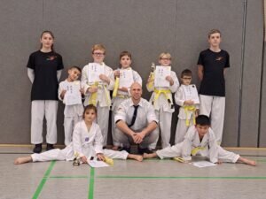 Nach Prüfung der Einzeldisziplinen Wettkampf, Steppschule, Einschrittkampf, Formen, Theorie, Grundschule, Überprüfung, Selbstverteidigung und Bruchtest (bei SPORTING Taekwondo immer mit gesprungener oder gedrehter Technik, mittels welcher ein Brett zu brechen ist) verleihte er allen 12 im Folgenden aufgeführten Sportler*innen die Urkunde und den Gürtel zur nächsten Graduierung: