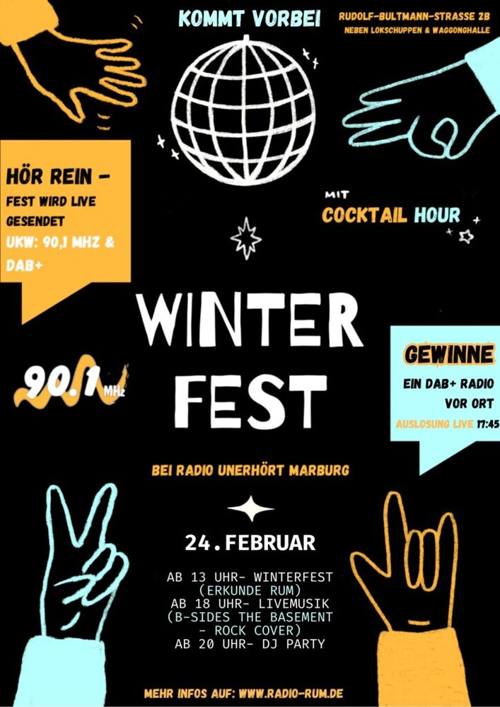 Radio Unerhört Marburg hat sein Funkhaus in Marburg in der Rudolf-Bultmann-Straße 2b, das ist auf dem Gelände des ehemaligen Bahnbetriebswerk in unmittelbarer Nähe zur Waggonhalle. Weitere Informationen zum Winterfest finden Interessierte unter www.radio-rum.de