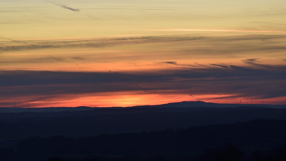 Oberhalb von Grünberg – Auf der Queckbörner Höhe, erlebte ich die wunderbare Stimmung in den späten Nachmittagsstunden, wie meine Aufnahmen zeigen. Infolge derzeitiger Wetterlage erzeugte das Sinken der Sonne ein beeindruckendes Farbenspiel, das manchmal nicht nur im Abendrot erstrahlt, sondern auch gelbe, violette oder gar grüne Farbtöne aufweist.