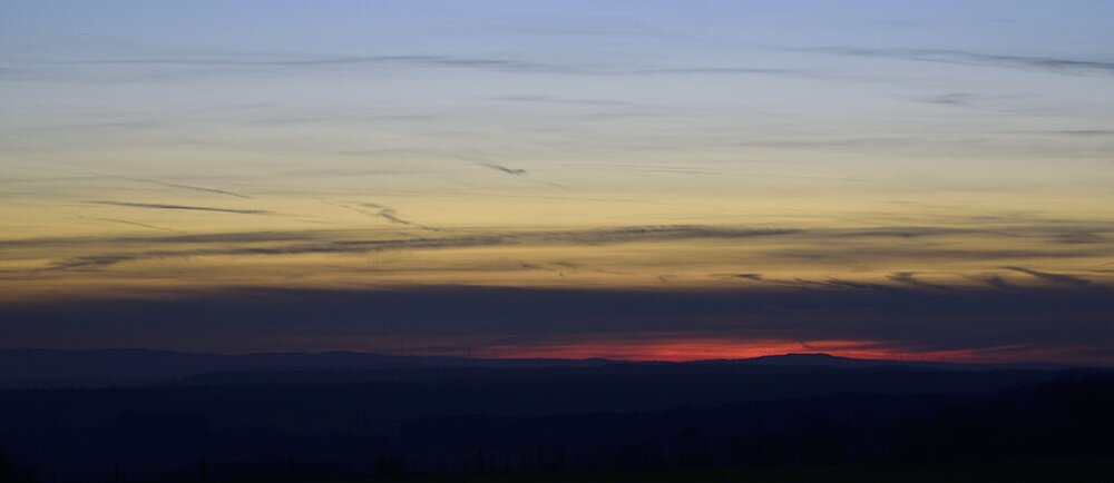 Wieder einen schönen Sonnenuntergang abgelichtet, möchte gerne sagen -erlebt. Die gelb-rote Sonnenscheibe hatte sich nun am Horizont über dem Taunusrücken verabschiedet.