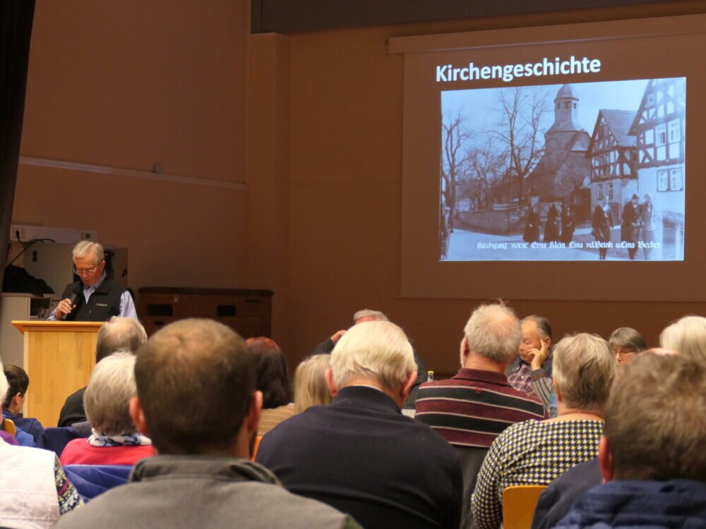 Abschließendes Thema war die Frankenbacher Kirchengeschichte. Artur Ruppert skizzierte die Entstehung der Freien evangelischen Gemeinde und ihre Geschichte. Sie entstand in den 1880er Jahren, weil “in der Gemeinde eine große Unwissenheit und Unkenntnis in christlichen und kirchlichen Dingen herrschte.” Zunächst traf man sich bei Schreiner Christian Wack. Dieser hatte 1884 Verbindung zur Neukirchner Mission aufgenommen. 1905 baute die Gemeinde ein eigenes Haus. Günter Schäfer: “Am Anfang meiner 33-jährigen Zeit als Pfarrer hier in Frankenbach gab es große Spannungsverhältnisse.” Doch seit Mitte der 2000er Jahre ging man, auch durch die Aktion “Damit die Glocken wieder läuten” (Sanierung des Dachstuhles der Kirche), aufeinander zu, traf sich mit Kirchenvorstand und Gemeindeleitung der Freien evangelischen Gemeinde zur Aussprache und zu Sitzungen. Ergebnis waren gemeinsame Aktivitäten wie das “Kerzen anzünden” im Advent, das gemeinsame große Grillfest auf der Familienwiese und gemeinsame Gottesdienste am Buß- und Bettag. Kurzvideos, die Artur Ruppert zusammengestellt hatte, dokumentierten die Zusammenarbeit der FeG und der Ev. Kirchengemeinde.