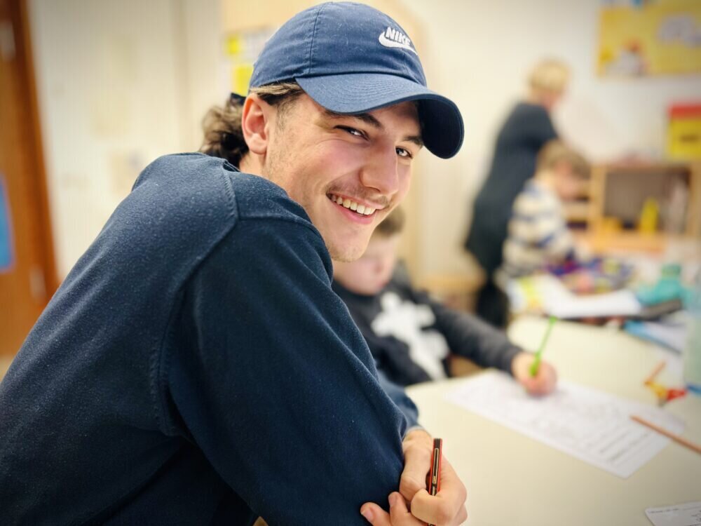 Alexander Lambrinos absolviert ein FSJ an der Sophie-Scholl-Schule. In der „Erdmännchen-Klasse“ unterstützt er Kinder mit emotionalem und sozialem Förderbedarf
